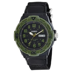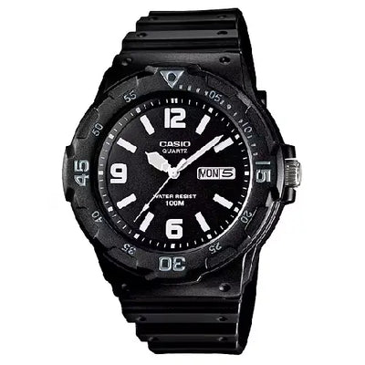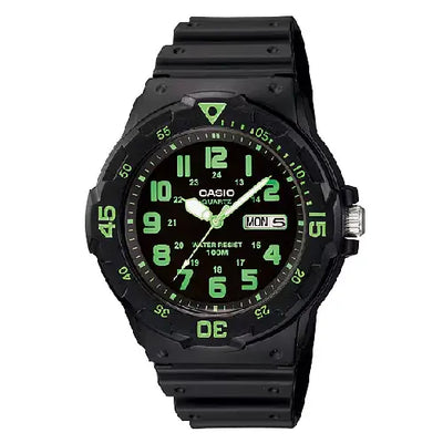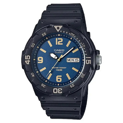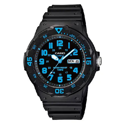 classic diver-inspired design. Part of the Casio Collection, this timepiece features a vibrant blue dial with bold, luminescent hands and markers for easy reading in low light conditions.