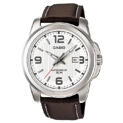 Casio Collection Analog MTP-1314L-7AVDF White Dial Leather Strap Men's Watch