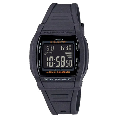 Casio Digital W-201-1BVDF Grey Display Resin Strap Men's Watch