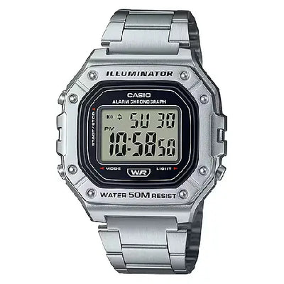 Casio Digital W-218HD-1AVDF Black Display Dial Stainless Steel Men's Watch