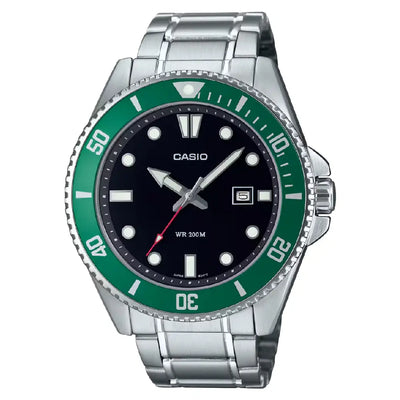 Casio Diver's MDV-107D-3A2VDF Analog Green Dial Stainless Steel Men's Watch