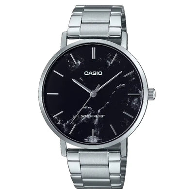 Casio Enticer Analog MTP-VT01DM-1AUDF Black Dial (Marble Design) Stainless Steel Men's Watch