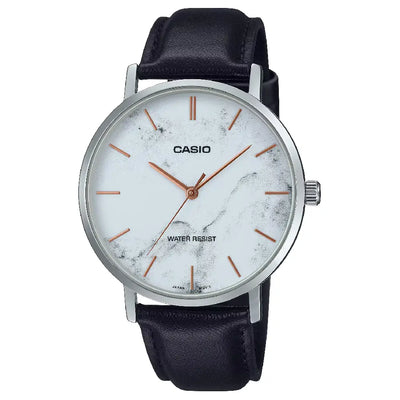 Casio Enticer Analog MTP-VT01LM-7AUDF Silver Dial (Marble Design) Leather Strap Men's Watch