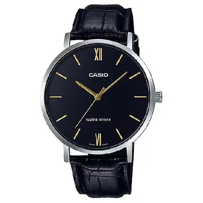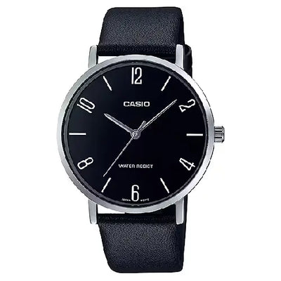 Casio Enticer Analog MTP-VT01L-1BUDF Black Dial Leather Strap Men's Watch