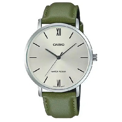 Casio Enticer Analog MTP-VT01GL-3BUDF Green Dial Leather Strap Men's Watch