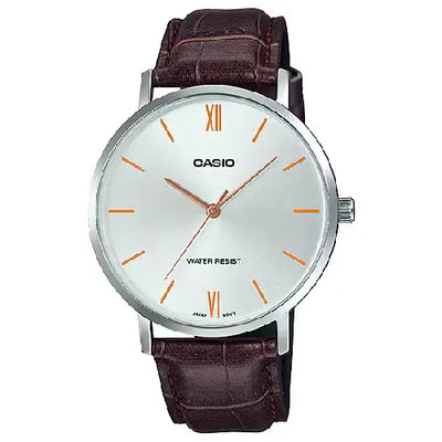 Casio Enticer Analog MTP-VT01L-3BUDF Silver Dial Leather Strap Men's Watch