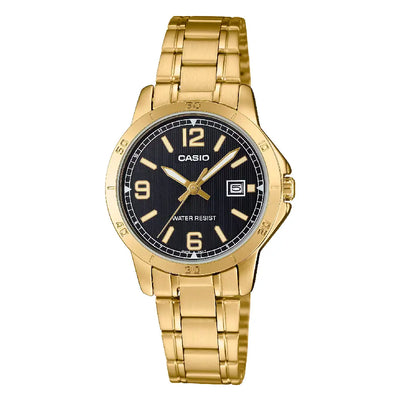 Casio Enticer Ladies Analog LTP-V004G-1BUDF Black Dial Stainless Steel Women's Watch