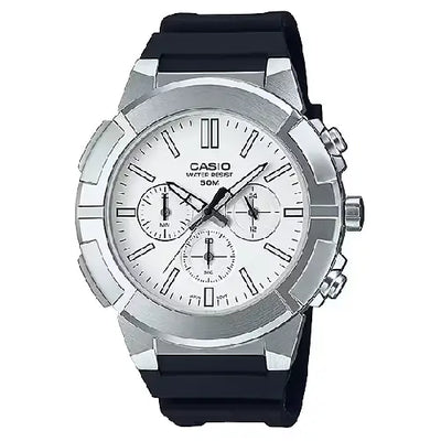 Casio Enticer MTP-E500-7AVDF Chronograph Analog White Dial Resin Strap Men's Watch