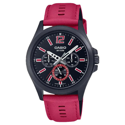 Casio Enticer MTP-E350BL-1BDF Multi-Function Analog Black Dial Leather Strap Men's Watch