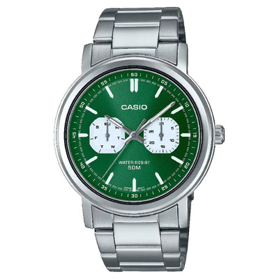 Casio Enticer MTP-E335D-3EVDF Multi-Function Analog Green Dial Stainless Steel Men's Watch