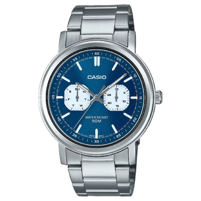 Casio Enticer MTP-E340D-2AVDF Multi-Function Analog Blue Dial Stainless Steel Men's Watch
