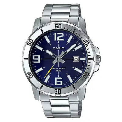 Casio Enticer MTP-VD01D-2EVUDF Date Analog Blue Dial Stainless Steel Men's Watch