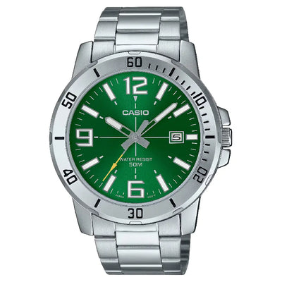 Casio Enticer MTP-VD01D-3E1VUDF Date Analog Green Dial Stainless Steel Men's Watch
