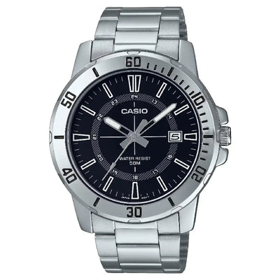Casio Enticer MTP-VD01D-1CVUDF Date Analog Black Dial Stainless Steel Men's Watch