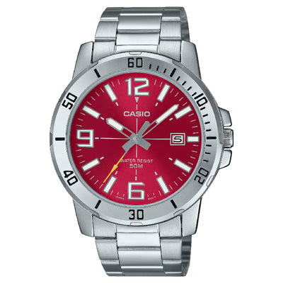 Casio Enticer MTP-VD01D-4BVUDF Date Analog Red Dial Stainless Steel Men's Watch