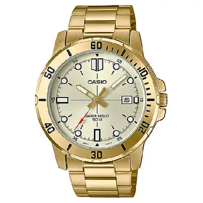 Casio Enticer MTP-VD01G-9EVUDF Date Analog Gold Dial Stainless Steel Men's Watch