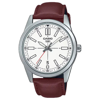 Casio Enticer MTP-VD03L-5AUDF Date Analog White Dial Leather Strap Men's Watch