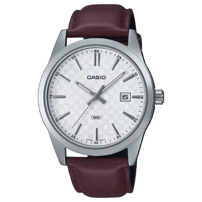 Casio Enticer MTP-VD02L-7EUDF Date Analog White Dial Leather Strap Men's Watch