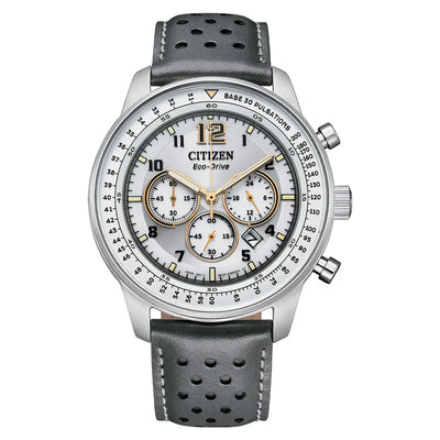 Citizen Eco-Drive CA4500-24H Aviation-Inspired Design Grey Dial Leather Strap Men's Watch