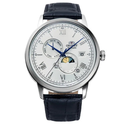 Orient Automatic RA-AK0802S Bambino Sun & Moon White Dial Leather Strap Men's Watch