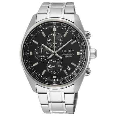 Seiko Chronograph SSB379P1 Black Dial Quartz Stainless Steel Men's Watch
