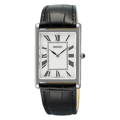 Seiko Conceptual SWR103P1 (Seiko Tank) Rectangular Case White Dial Leather Strap Men's Watch