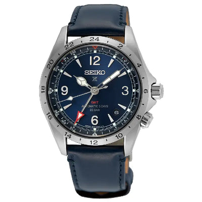 Seiko Prospex SPB377J1 Automatic GMT Alpinist Watch Blue Dial Leather Strap Men's Watch