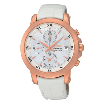 Seiko Premier SNDV66P1 Chronograph White Dial Leather Strap Women's Watch