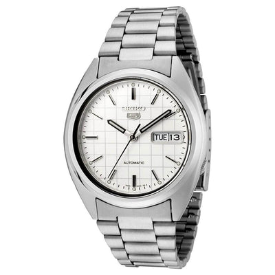 Seiko Series 5 SNXF05K1 Automatic White Grid Dial Stainless Steel Men's Watch
