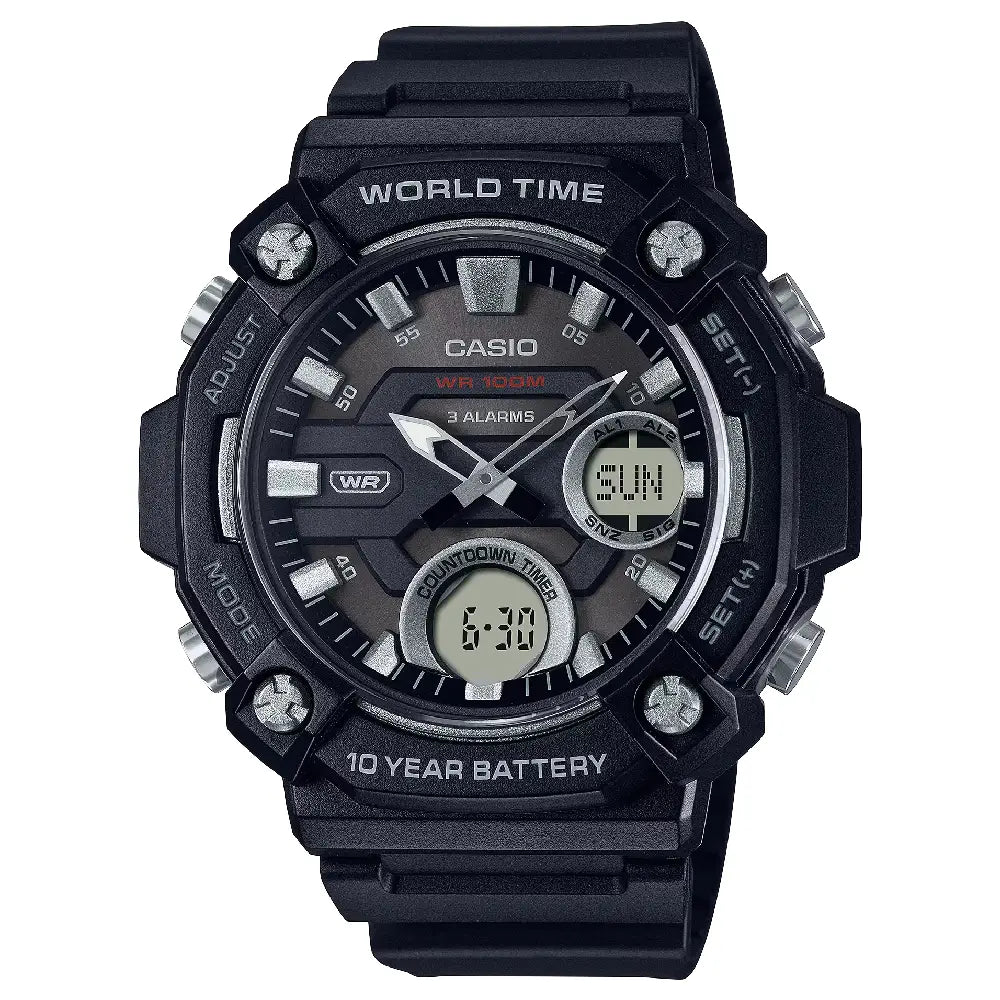Casio Analog-Digital World Time AEQ-120W-1AVDF with Fishing Timer Black Dial Resin Strap Men's Watch