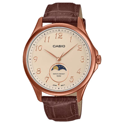 Casio Classic MTP-M110RL-5A Analog (New Model) Moon Phase Cream Dial Leather Strap Men's Watch