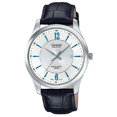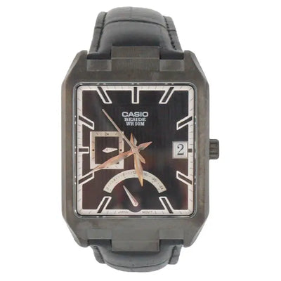 Casio Beside Analog BEM-309BL-1AVDF Black Dial Leather Strap Men's Watch
