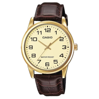 Casio Classic Analog MTP-V001GL-9BUDF Gold Dial Leather Strap Men's Watch