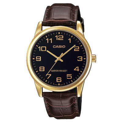 Casio Classic Analog MTP-V001GL-1BUDF Black Dial Leather Strap Men's Watch