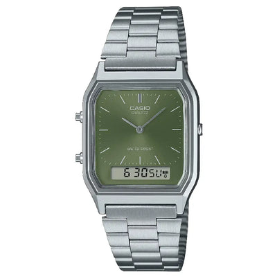 Casio Analog-Digital AQ-230A-3AMQYDF Green Dial Stainless Steel Unisex Watch