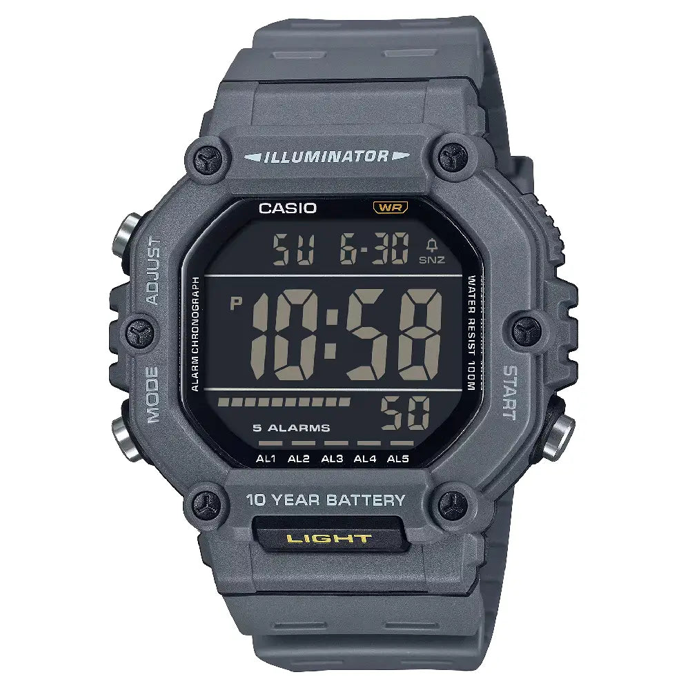 Command your day with the Casio Digital AE-1600H-8BVDF Men's Watch. This heavy-duty timepiece features a bold, oversized grey resin case and a large, exceptionally easy-to-read digital display. Designed for practical use, it includes a convenient front-button LED backlight, 100-meter water resistance, and an amazing 10-year battery life. With essential functions like Dual Time, stopwatch, timer, and multiple alarms, the AE-1600H-8BVDF is your go-to watch for robust performance and effortless style, perfect for sports, recreation, and daily reliability.