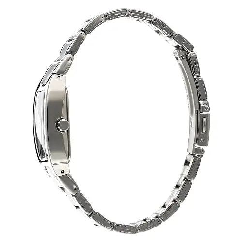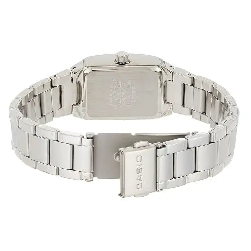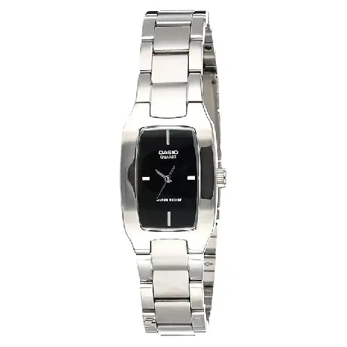 The Casio LTP-1165A-1CDF is a classic and elegant timepiece designed for women. Part of the Standard Analog collection, this watch features a durable silver stainless steel round case and a matching Stainless Steel Women's Watch. The sophisticated black analog dial is easy to read, with simple silver-tone baton-style hour markers and hands, giving it a timeless and clean look. The simple design makes it a versatile accessory for any occasion. This timepiece is designed for both style and practicality, offering water resistance and a durable mineral glass crystal. It runs on a reliable quartz movement, making it a perfect addition to any wardrobe.