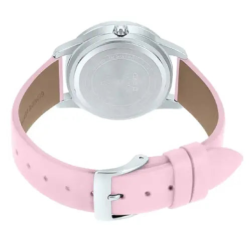 The Casio LTP-1358L-4A2VDF is a classic and reliable timepiece designed for women. Part of the Standard Analog collection, this watch features a durable rose gold-tone round case that beautifully complements the pink analog dial. It is paired with a brown Leather strap. The sophisticated pink analog dial is easy to read and includes a convenient date display at the 3 o'clock position. The design is both timeless and practical, offering a clear display and 50-meter water resistance. It runs on a reliable quartz movement, making it a perfect addition to any wardrobe for both casual and professional settings.