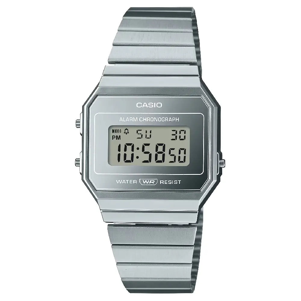 Embrace understated elegance with the Casio Vintage Digital A700WEV-7ADF Unisex Watch. This remarkably slim timepiece combines iconic retro style with a sleek, modern profile, featuring a crisp silver digital dial beautifully framed by a polished stainless steel. Its distinctive Milanese mesh provides a comfortable and refined fit. Equipped with practical functionalities like a stopwatch, daily alarm, and an LED light, this water-resistant watch offers everyday convenience in an ultra-lightweight design. The A700WEV-7ADF is a perfect choice for those who appreciate minimalist aesthetics and reliable performance.