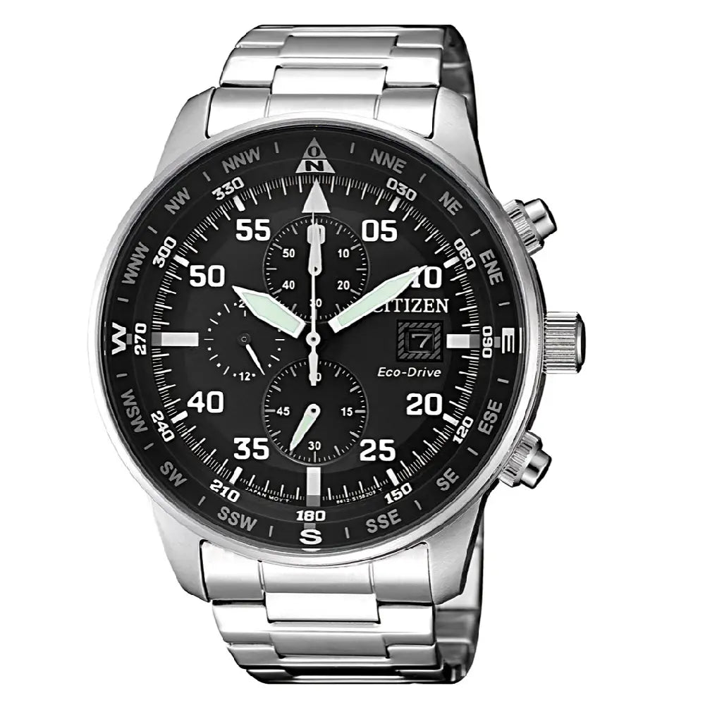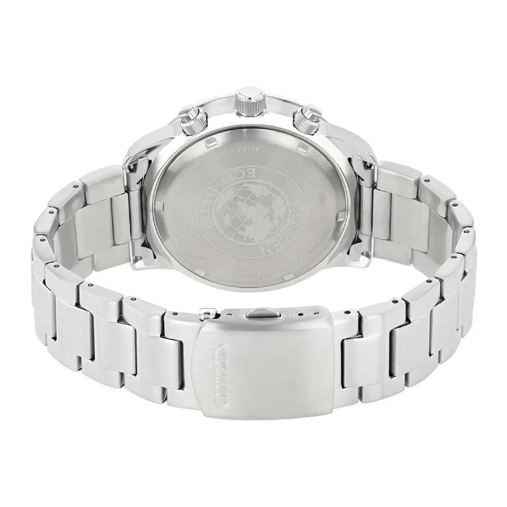 Experience a fusion of sophisticated style and eco-friendly technology with the Citizen Eco-Drive Chronograph CA0690-88E men's watch. This sleek timepiece features a classic black dial with three functional sub-dials, all housed within a refined 43mm stainless steel case. Powered by Citizen's innovative Eco-Drive technology, this watch is charged by any light source and never requires a battery change.The chronograph functionality allows for precise time measurement with a 1/5-second counter and includes a 24-hour sub-dial and a date display.The watch is protected by a durable mineral crystal and features luminous hands and markers.Complemented by a robust stainless steel bracelet and a water resistance of 100 meters, the Citizen CA0690-88E is a dependable and stylish accessory for any occasion.