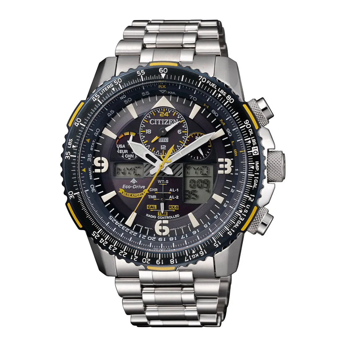 Take to the skies with the Citizen Promaster Skyhawk A-T Eco-Drive Atomic Timekeeping 45mm JY8078-52L Men's Watch. This professional-grade pilot's timepiece features a complex blue dial with both analog and digital displays, all housed in a robust stainless steel case. With advanced features like radio-controlled time synchronization, a chronograph, perpetual calendar, and World Time, this watch offers unmatched accuracy and functionality. Powered by light with Citizen's Eco-Drive technology, and offering 200-meter water resistance, the JY8078-52L is the ultimate tool for pilots and global travelers.