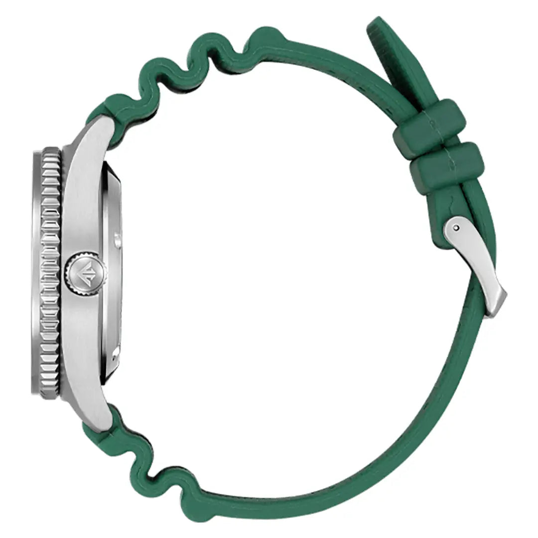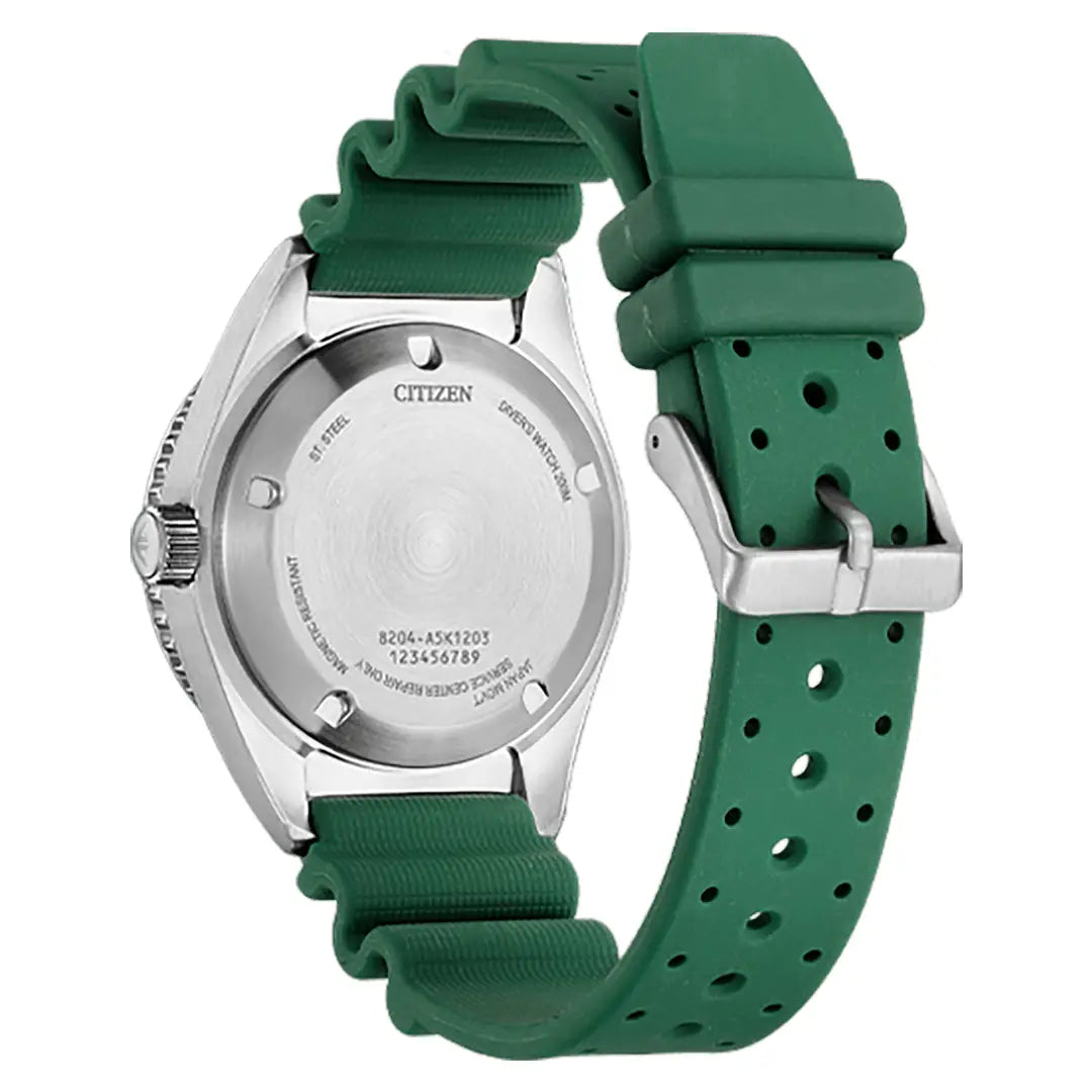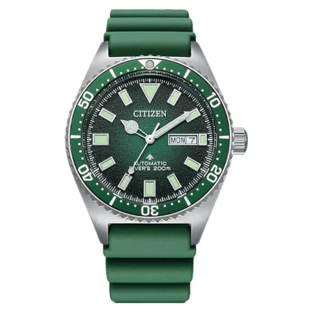 Dive into precision and reliability with the Citizen Promaster Marine NY0121-09X, a professional-grade diver's watch designed for the adventurous spirit. Featuring a vibrant green dial, robust stainless steel case, and a comfortable green polyurethane strap, this timepiece is powered by Citizen's automatic Caliber 8204 movement. With ISO 6425 certification and 200-meter water resistance, it's built to withstand the rigors of underwater exploration while offering everyday style and functionality.