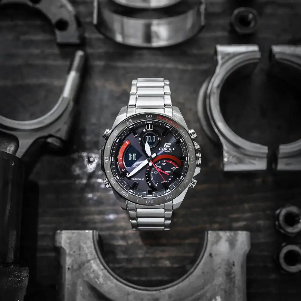 Discover the perfect balance between fashion and practicality with Casio Edifice ECB-900DB-1ADR Smartphone Link Watch. Featuring a trendy blue accent and athletic appearance, this watch sets itself apart from the rest. Keep connected and informed with its multi-function LCD display, Bluetooth capabilities, world time, and speed indicator. Also, enjoy the convenience of a fully automatic LED light for optimal visibility at all times.