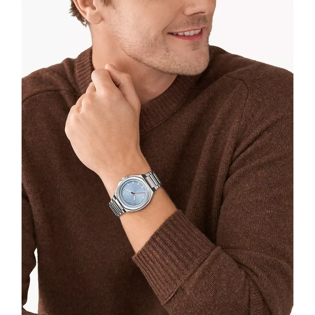 Discover smart sustainability and sleek style with the Fossil Evanston BQ2766, a men's watch that combines classic design with modern technology. This timepiece features a captivating blue sunray dial with simple three-hand analog display, ensuring clear readability. Powered by an efficient solar-powered quartz movement, it charges from any light source, eliminating the need for battery replacements. Housed in a 45mm silver-tone stainless steel case and paired with a matching stainless steel bracelet, this watch offers 50 meters (5 ATM) of water resistance and is protected by a durable mineral crystal. It's a versatile and reliable choice for everyday wear, blending timeless aesthetics with eco-friendly functionality.