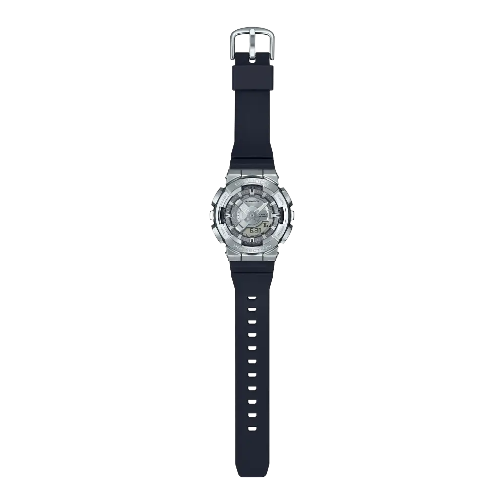 Upgrade your style with the sleek and slim GM-110 analog-digital combination G-SHOCK watch for women. The dial boasts a 3D multilayered arrangement of finely detailed components for striking depth and dimension. The digital display and analog hour and minute hands work in perfect harmony, ensuring clear visibility and easy time-telling. The stainless steel bezel cover and metallic dial components exude elegance and cool styling. With features such as world time, stopwatch, countdown timer, and alarms, this watch is both functional and fashionable. Stay on top of your game with this expertly crafted timepiece.