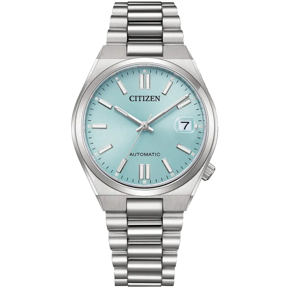 A modern evolution of a beloved classic, the Citizen Tsuyosa 37mm NJ0200-50L carries forward the legacy of Citizen’s mechanical watchmaking. Its roots trace back to the NH299 series—one of the brand’s best-selling mechanical lines in the late 1990s and early 2000s. In 2022, TSUYOSA revitalized this design with a fresh, contemporary look, and now in 2025, the TSUYOSA 37mm refines it further, offering a sleeker 37 mm case, making it 3 mm smaller than the 40 mm TSUYOSA while maintaining the same bold appeal. The Ice Blue dial, accentuated by crisp stroke indices, adds a refined touch, while a date display at 3 o’clock enhances everyday functionality. At its core, the Caliber 8210 automatic movement ensures precision and reliability, offering a 42-hour power reserve. A sapphire crystal protects the dial, and with 5 bar (50 meters) water resistance, this timepiece is designed for both heritage enthusiasts and modern trendsetters alike.