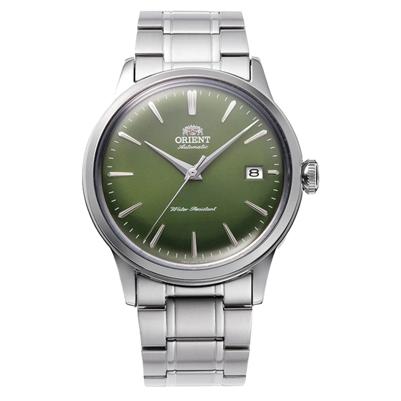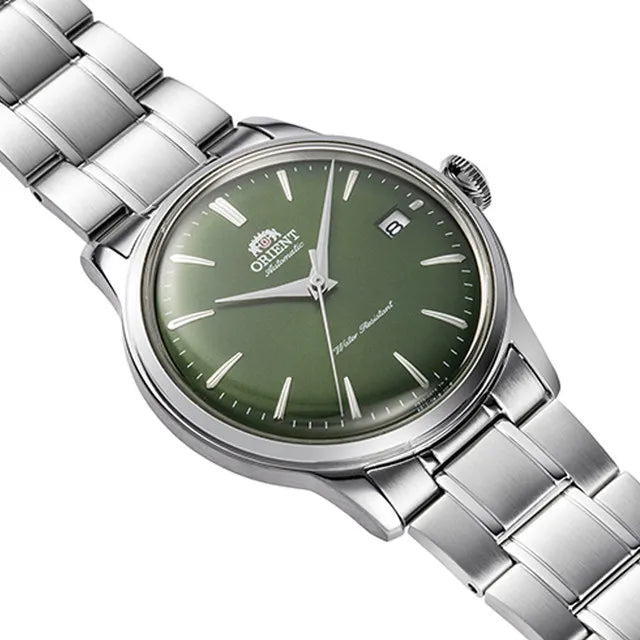 Experience timeless elegance with the Orient Bambino Version 7 RA-AC0M09E30B, a men's automatic watch that seamlessly blends vintage charm with modern sophistication. Featuring a captivating sunburst green dial, domed mineral crystal, and a polished stainless steel bracelet, this timepiece is powered by Orient's reliable Caliber F6724 movement. Its 38.4 mm case size offers a versatile fit, making it an ideal accessory for both formal occasions and everyday wear.