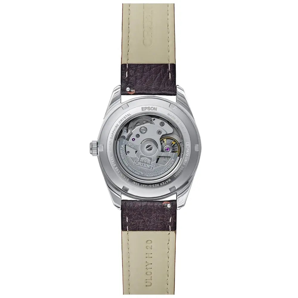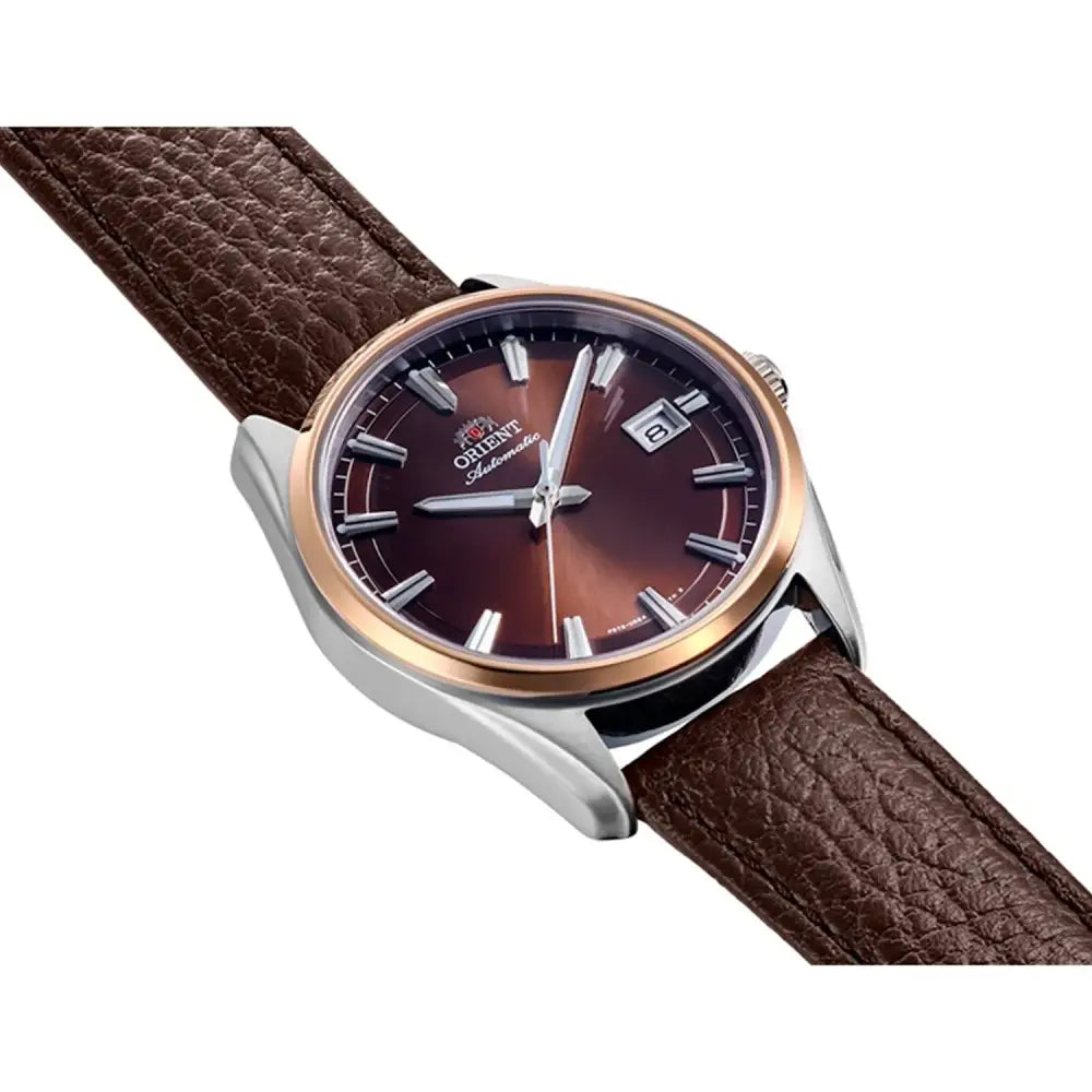 Experience a fusion of classic styling and urban design with the Orient Contemporary Automatic RA-AC0R03Y men's watch. This refined timepiece, from the Stretto Date series, features a captivating brown dial and a stylish 38.5mm stainless steel case with a sophisticated rose gold-plated bezel. Powered by a reliable in-house automatic movement (Caliber F6722), this watch offers dependable timekeeping with a convenient date display. The watch is protected by a scratch-resistant sapphire crystal and features a transparent case back that provides a glimpse into the intricate mechanics. Complemented by a high-quality brown genuine leather strap, the Orient RA-AC0R03Y is a perfect choice for those who appreciate a unique aesthetic and the artistry of mechanical watchmaking.