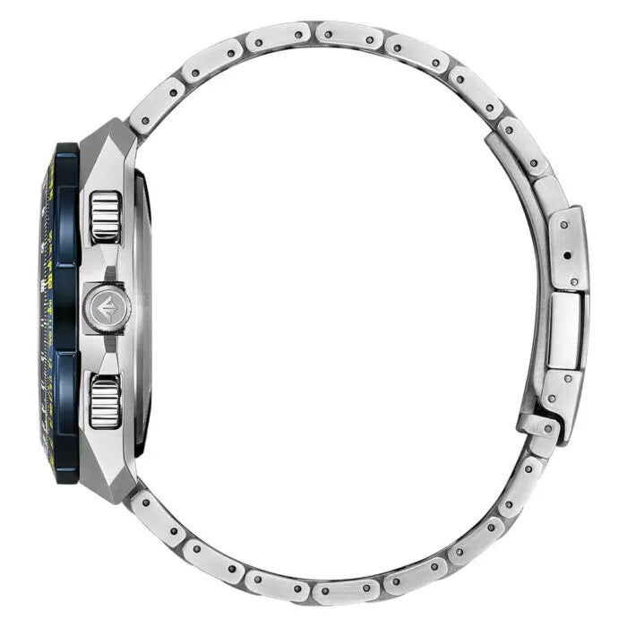 Embark on a journey of precision and pride with the Blue Angels, where excellence meets exceptional design. This extraordinary timepiece is not just a watch; it’s a testament to the prowess and dedication of the U.S. Navy and Marine Corps. Picture this: a silver-tone stainless steel case, a captivating blue ion-plated bezel, a vibrant yellow inner bezel, and a mesmerizing blue dial shielded by scratch-resistant sapphire crystal. But the allure doesn’t stop there. Dive into unparalleled accuracy with atomic time clock synchronization, time adjustment across 43 world cities, and a 1/100-second chronograph that spans 24 hours. It doesn’t just keep time; it masters it. With features like a perpetual calendar, 2 alarms, a 99-minute countdown timer, a digital backlight display, a Universal Coordinated Time (UTC) display, and a power reserve indicator, it’s your ally in conquering every moment. Wear the elite insignia proudly on your wrist as the silver-tone stainless steel bracelet embraces you with a fold-over clasp featuring hidden push buttons. Powered by Eco-Drive technology, this watch harnesses sustainable energy from light, eliminating the need for batteries. Dive into the depths with confidence, as it’s water-resistant up to 200 meters. Reach new altitudes in style and pay homage to the elite Blue Angels with a timepiece that transcends expectations – a true reflection of precision, power, and tribute. Elevate your wrist game; this is not just a watch; it’s a statement.