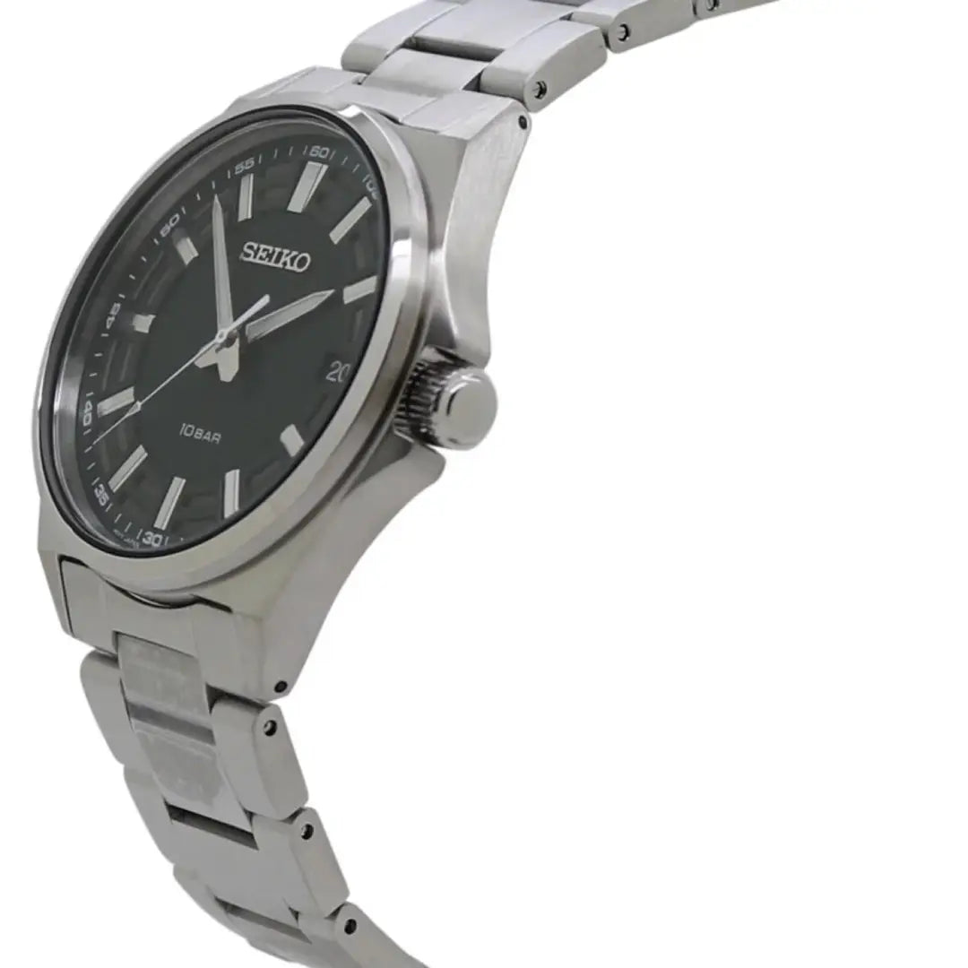 The Seiko SUR503P1 is a sophisticated and reliable timepiece from Seiko's Conceptual collection, offering a perfect blend of classic design and modern precision. It features a stunning green dial with luminous hands and a date display at the 3 o'clock position, all housed within a durable 40mm stainless steel case. The watch is powered by a high-performance 7N42 Quartz movement, ensuring exceptional accuracy and low maintenance. The minimalist design with luminous hands and hour markers provides excellent legibility, while the clean aesthetic makes it suitable for a wide range of occasions, from business meetings to casual outings. With a protective Hardlex crystal, 100-meter water resistance, and a robust stainless steel with a secure fold-over safety release clasp, this watch is built for durability and long-lasting style.